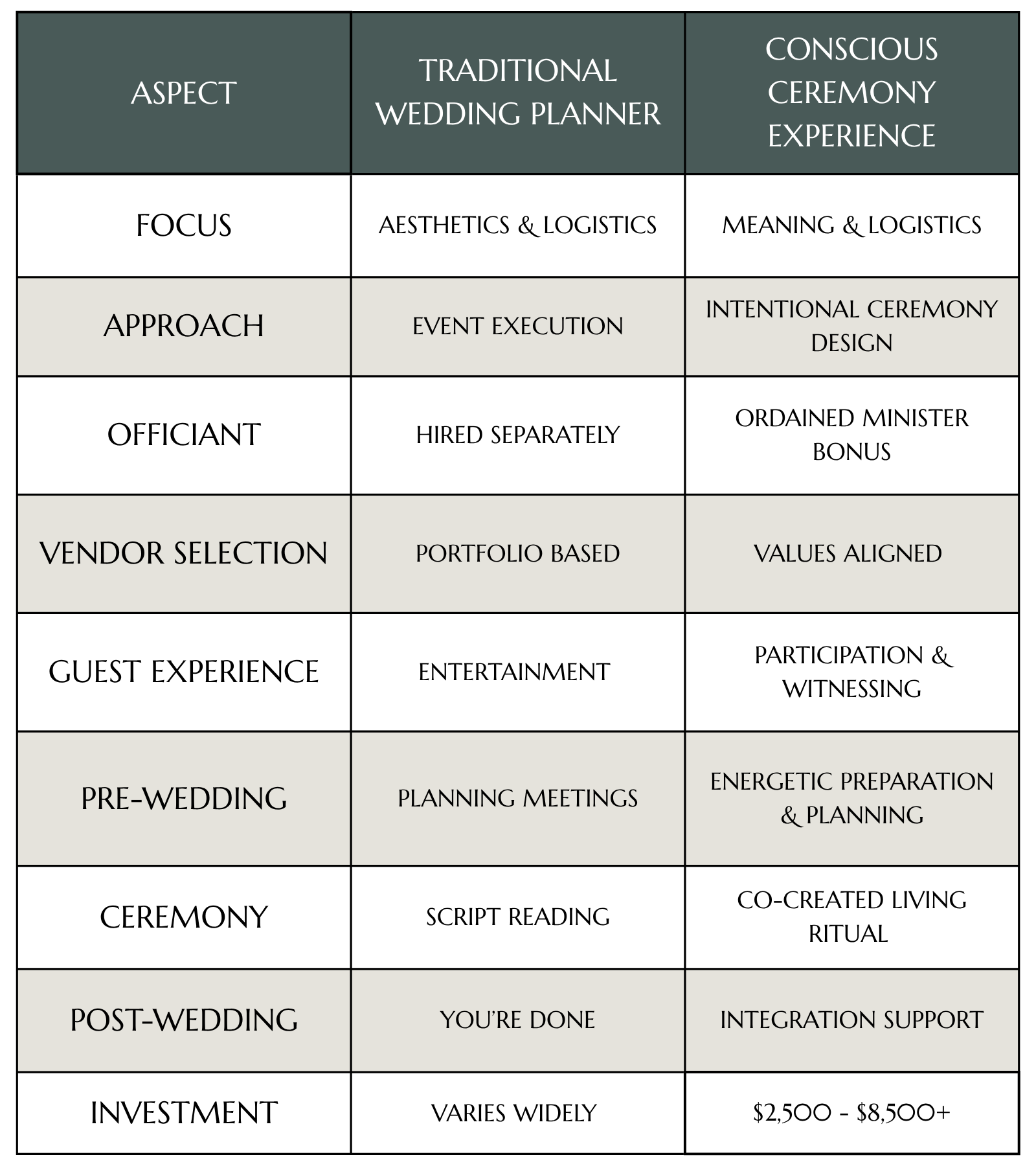 Traditional Wedding Planner vs. Conscious Coordination + Offication
