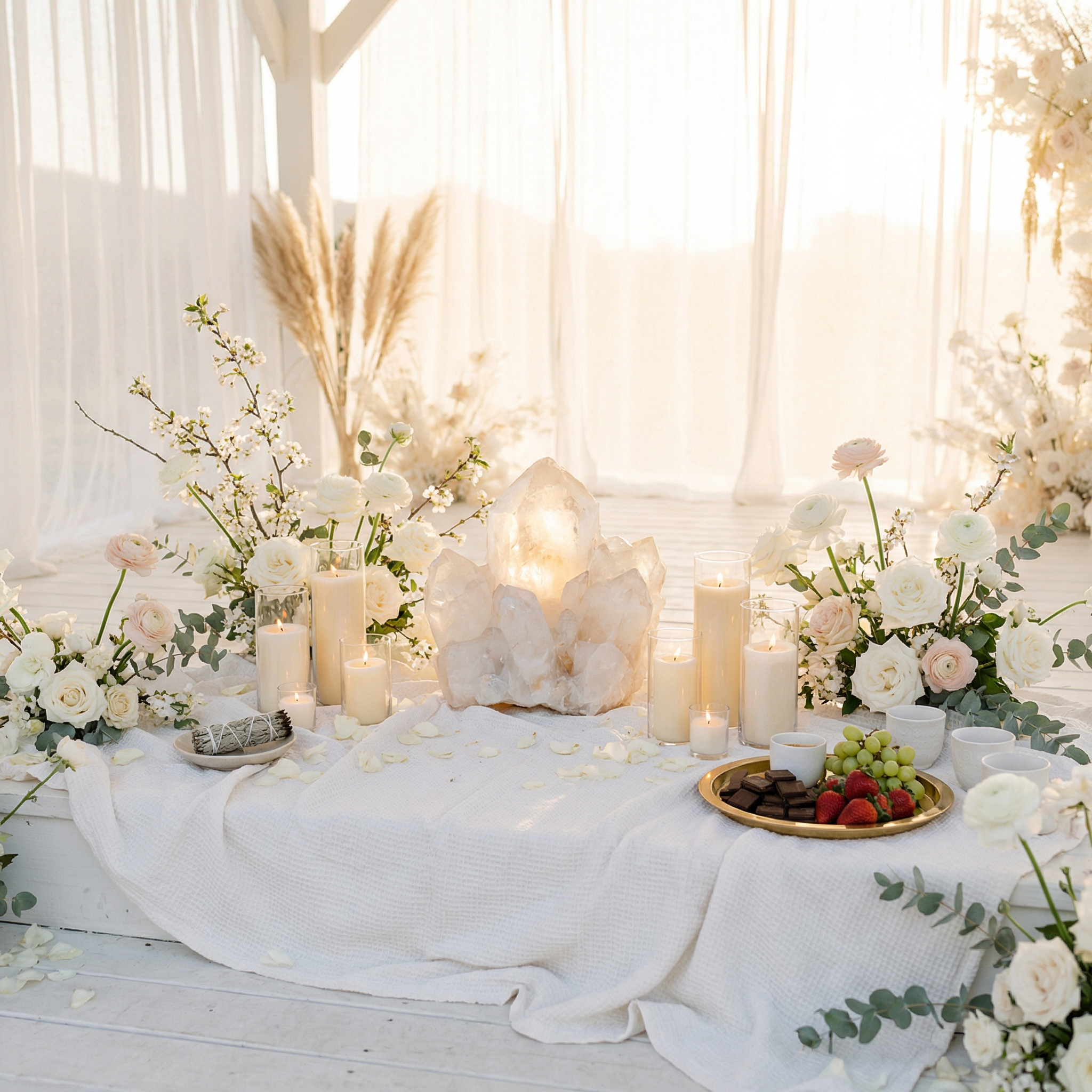 We weave wedding planning, ceremony facilitation, and intentional spiritual design into one seamless offering. Part wedding coordinator, part energy worker, part ritual guide. Every detail held with precision, love and reverence.